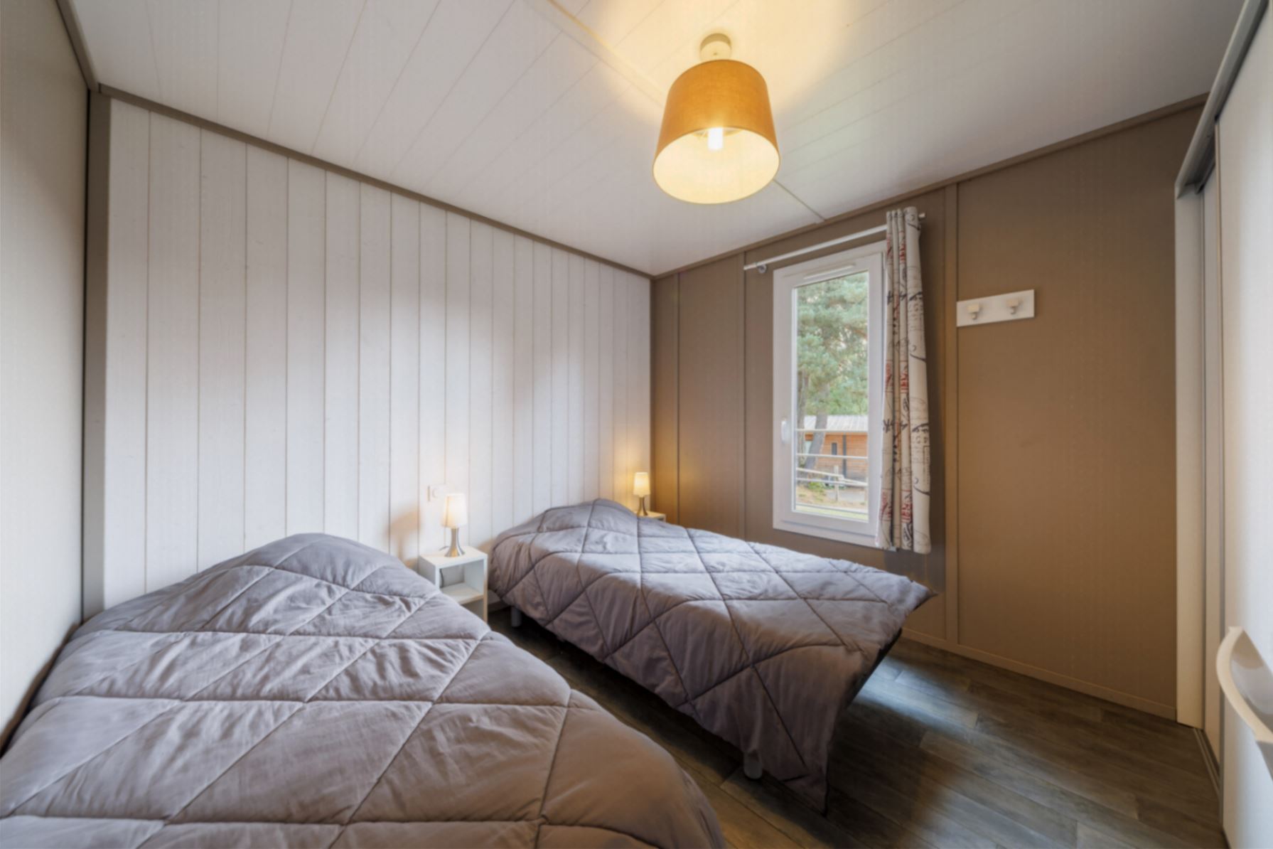 Coin nuit : une chambre avec 1 lit double (160X200), une chambre avec 2 lits simples (90X200) côte à côte, oreillers et couvertures fournis